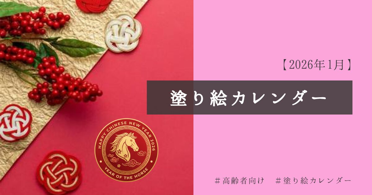 今回は2026年1月の塗り絵カレンダーをお届けします。